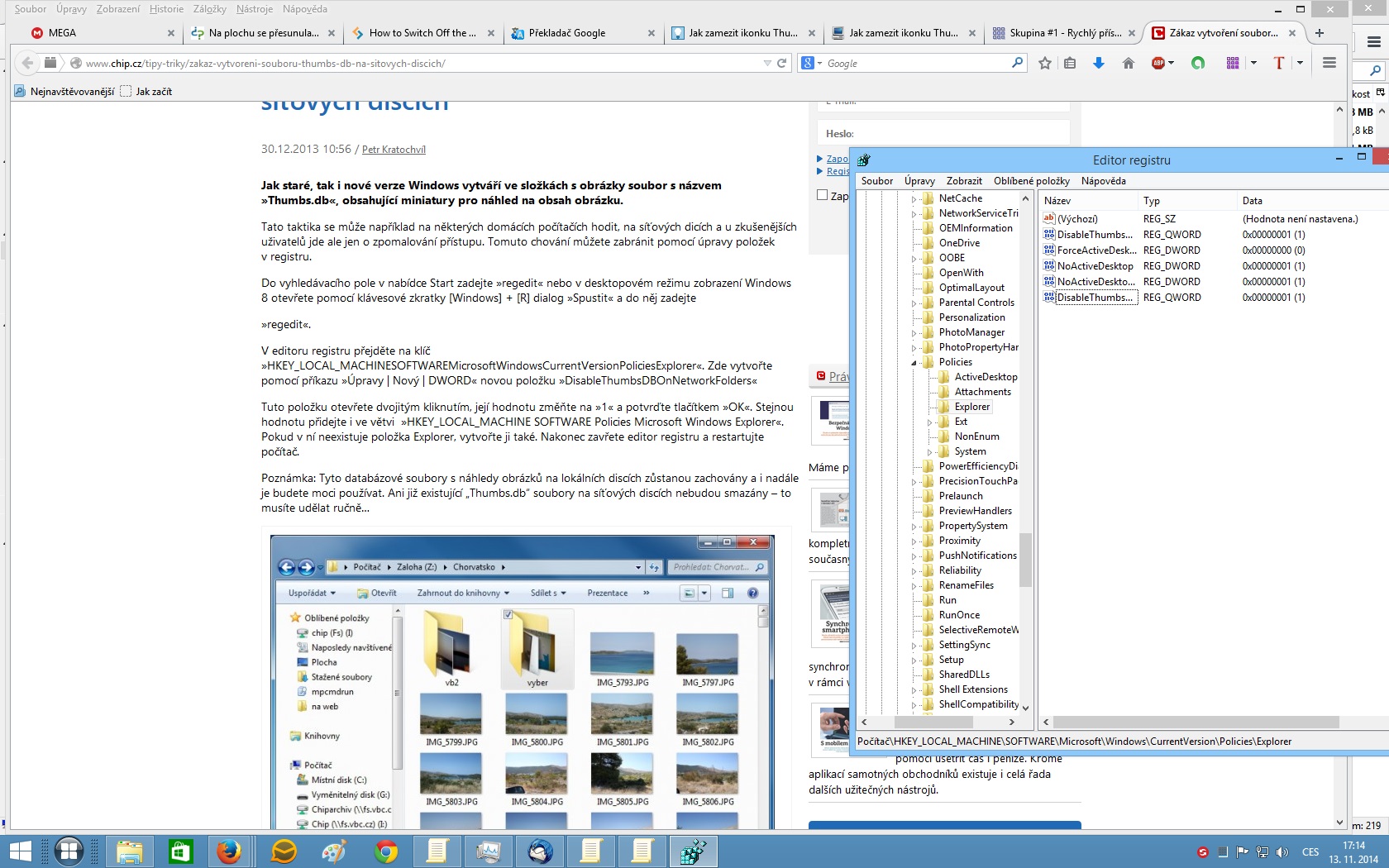 Thhumbs.db jsou miniatury obrázků. Jak zakázat jejich vytváření ? Stále se mi někde na PC objevují.