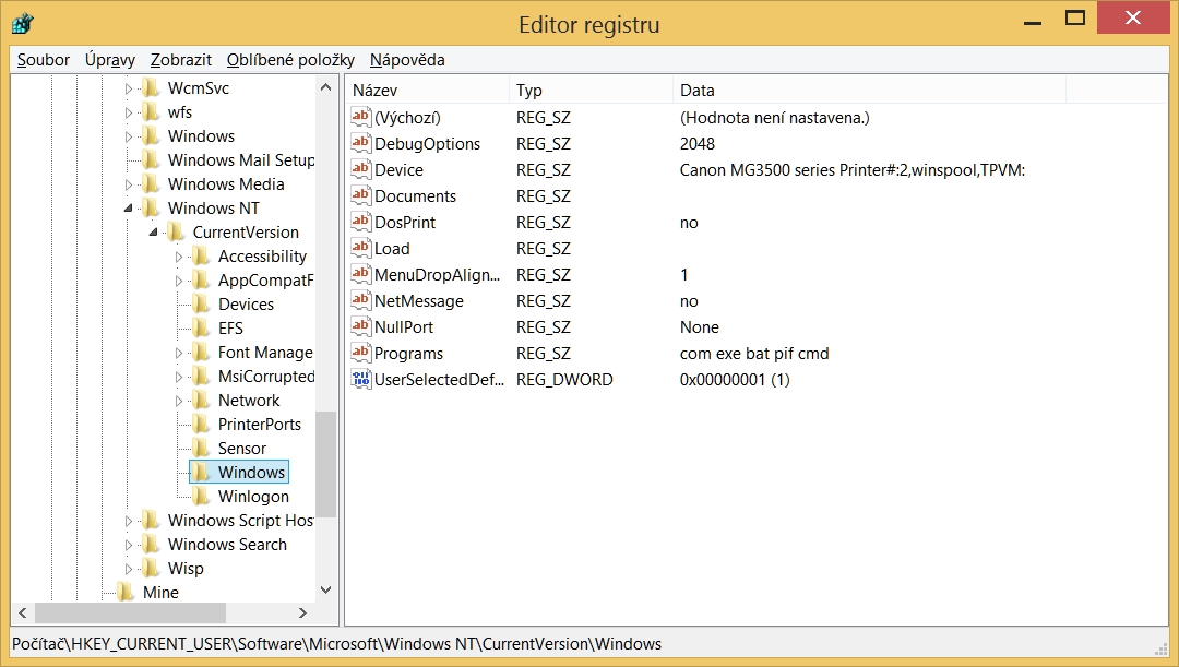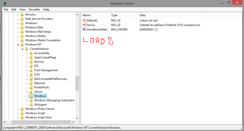 REGEDIT/HKEY_CURRENT_USER/SOFTWARE/MICROSOFT/WINDO WS NT/WINDOWS