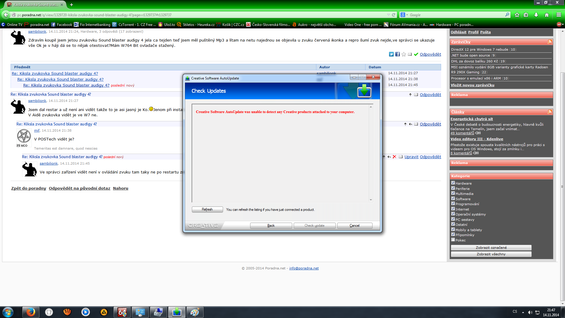 No zatím jí nechám na druhým Pc jestli pojede normálně,zvukovka je Ok tam na tom Pc jsem zkoušel Update pak jsem je komplet odinstaloval a nainstalovat nazpátek už nešli viz obr nahoře. Mám tu ještě jednu Creative tu jsem do toho druhýho slotu dostal není tak široká testnu až v pondělí a mrknu na ty doporučený ovladače,dík za typ .