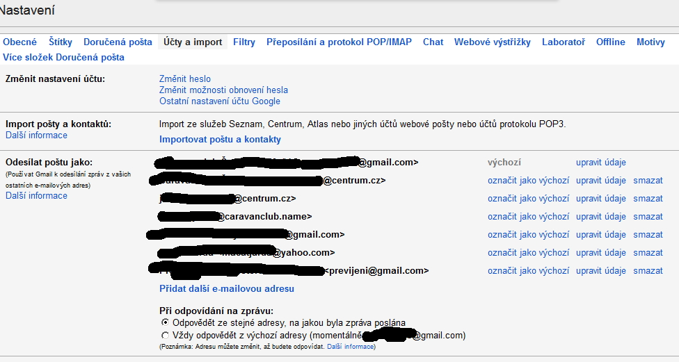 Samozřejmě je tu možnost vytvořit si účet u jiného poskytovatele elektronické pošty, a novou adresu pak využívat v rámci propojení s GMAILEM, ale k tomuto kroku chci sáhnout až když nebude jiná možnost.