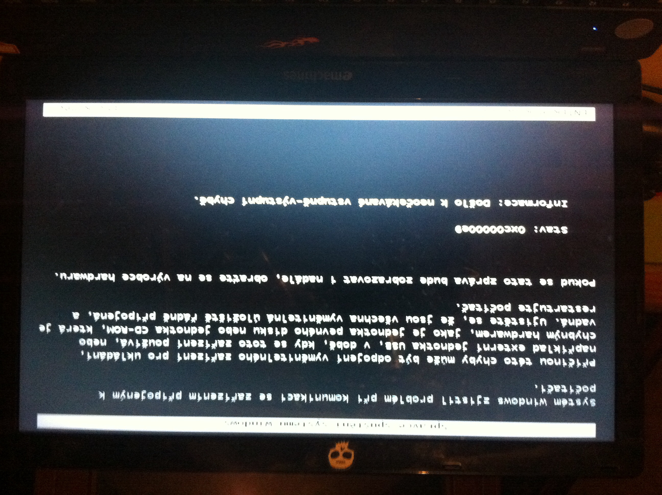 Nastavil jsem vrácení systému do stavu po výrobě a asi v polovině načítání se to vypnulo... A když teď zapnu počítač zobrazí se mi tohle: POwRhH0 -.- Instalaní disk nemám a na výrobce se mě obracet nechce :c