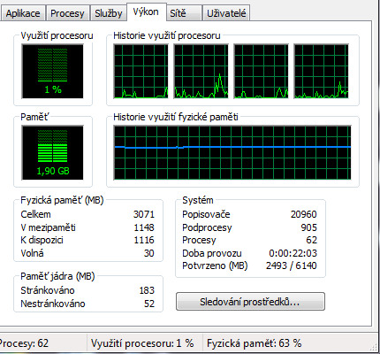jinak dole je benchmark toho disku a vykon ve spravci uloh...delal jsem i test pameti co je ve windows a taky mi to nic nenaslo :/