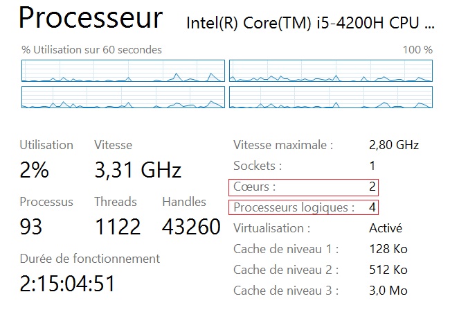 | - Ano ma 2x Srdce, ale 4x "Threads", kde je windows pocita jako logické procesory.