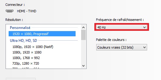 1) V Panelu nastaveni NVIDIA jsem vytvoril novy profil zobrazeni 1920x1080 na <40Hz> Kde pri spusteném V-Sync nebude synchronizovat vice jak 40 Fraps jak nastavenych Hz monitoru.(rozliseni)