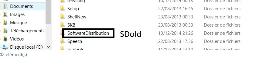 Najdi polozku/slozku "SoftwareDistribution" a prejmenuj ji na " SDold "