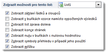 Tlačítko Office - Možnosti aplikace Excel - Upřesnit (platí pro Excel 2007)
