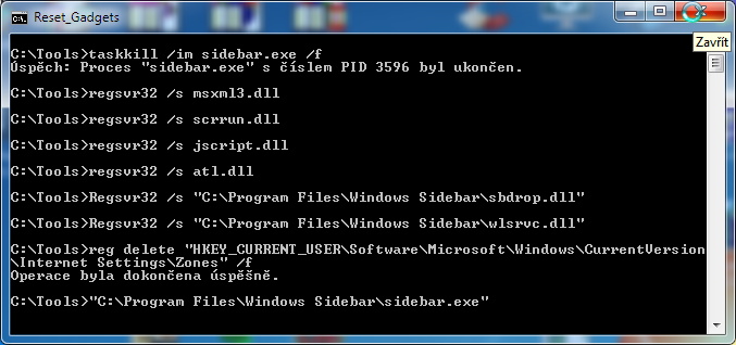 Stále nejde. Nyní obsahuje bat: taskkill /im sidebar.exe /f regsvr32 /s msxml3.dll regsvr32 /s scrru… poslední