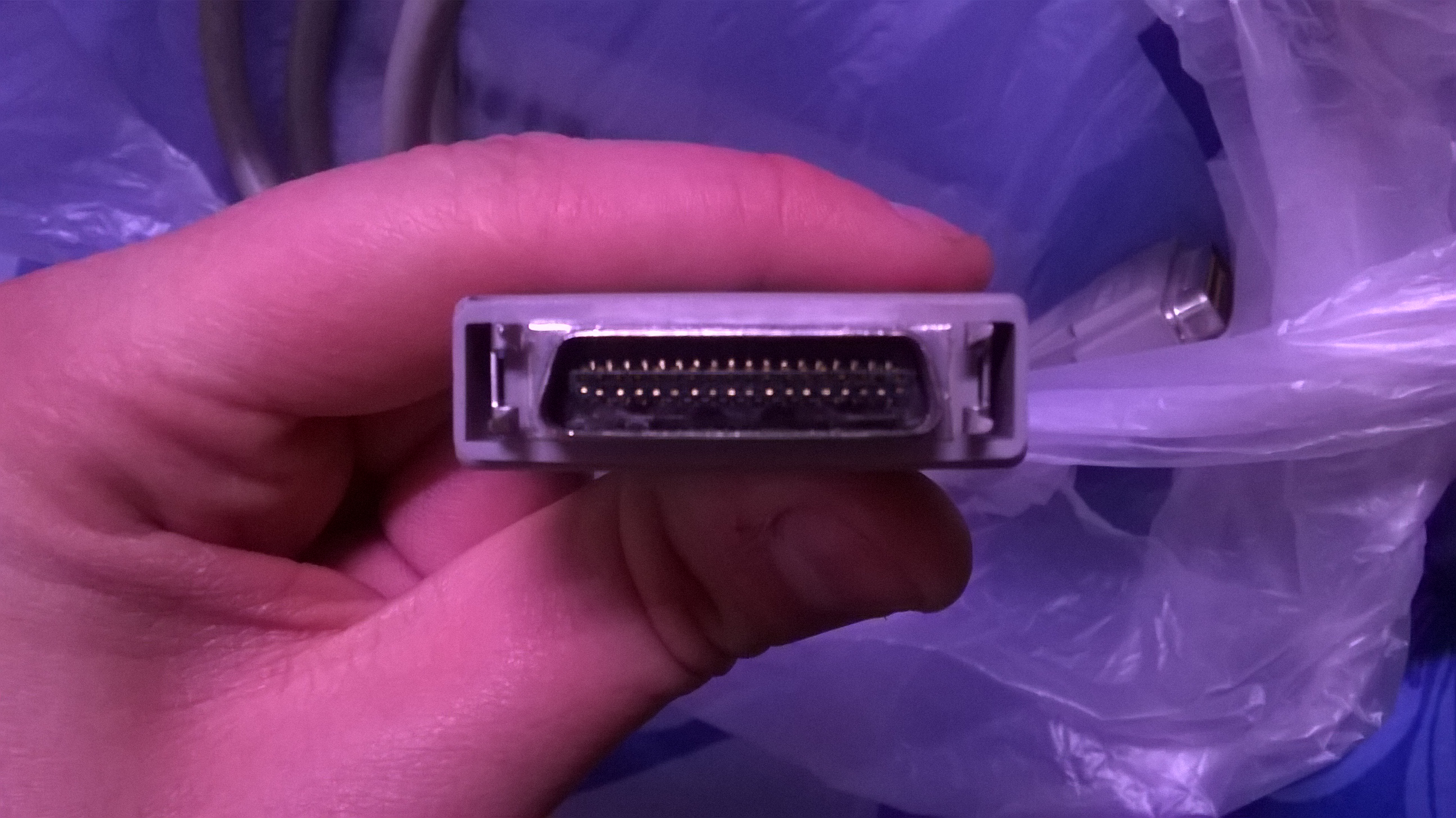 K tiskárně máš kabel Centronic, na jedné straně to co máš na fotce v dotazu (Centronics 36p) a na druhé straně 25 pin konektor Canon, ten co vložil jirka44.