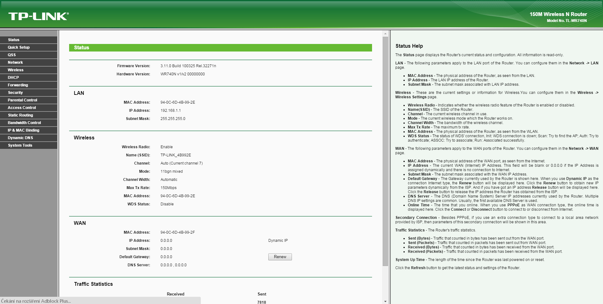 Ahoj, mám tekový problém. Asi každých 10-20 minut nebo i míň mi spadne internet. Nefuguje asi 2-3 min. Je tam žlutý vykřičník a nejde se na nic připojit. Mám wifi TPLink TL-WR740N a z ní vede kabel do mého stolního PC. Nevíte někdo co s tím? Na ostatních noteboocích se to neděje(zapojený přes Wifi signál) . Přiložen obrázek jak to vypadá na mém router nastavení. Děkuji za každou odpověď.