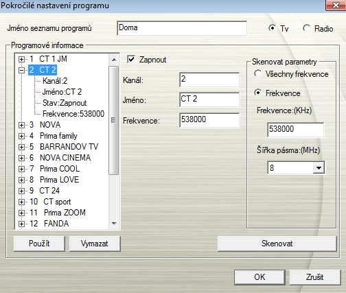 Problém je v tom, že karta nenajde žádné kanály. Nainstaloval jsem ovladače co byly přiloženy na CD + nějaký player přes který se TV spouští. Bydlím cca 10km od vysílače Votice-Mezivrata, tento vysílač by měl mít podle netu výkon 32kW a dosah až na hranice Prahy, z toho odvozuji, že signál tu je, ale nejspíše blbě nastavuji vlastnosti vyhledávání. V návodu o tom mlčí.