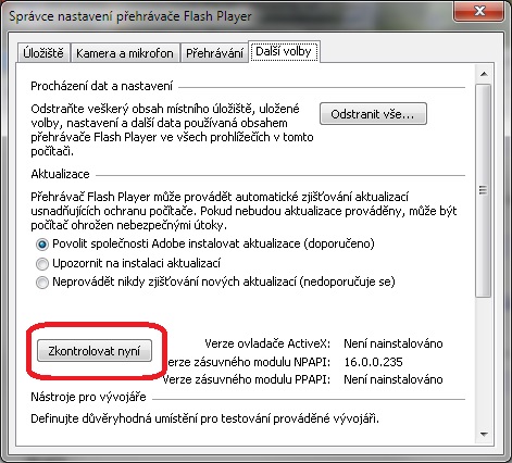 V ovladacich panelech v odinstalovat nebo zmenit program nemam zadnou verzi flash playeru jelikoz jedinou kterou jsem tam mel jsem odinstaloval jelikoz v Chromu fungovala a v FF ne tak jsem ji odinstaloval ze nainstaluji novou ale to ted nejde. mam zde akorat Adobe Shockwave player.