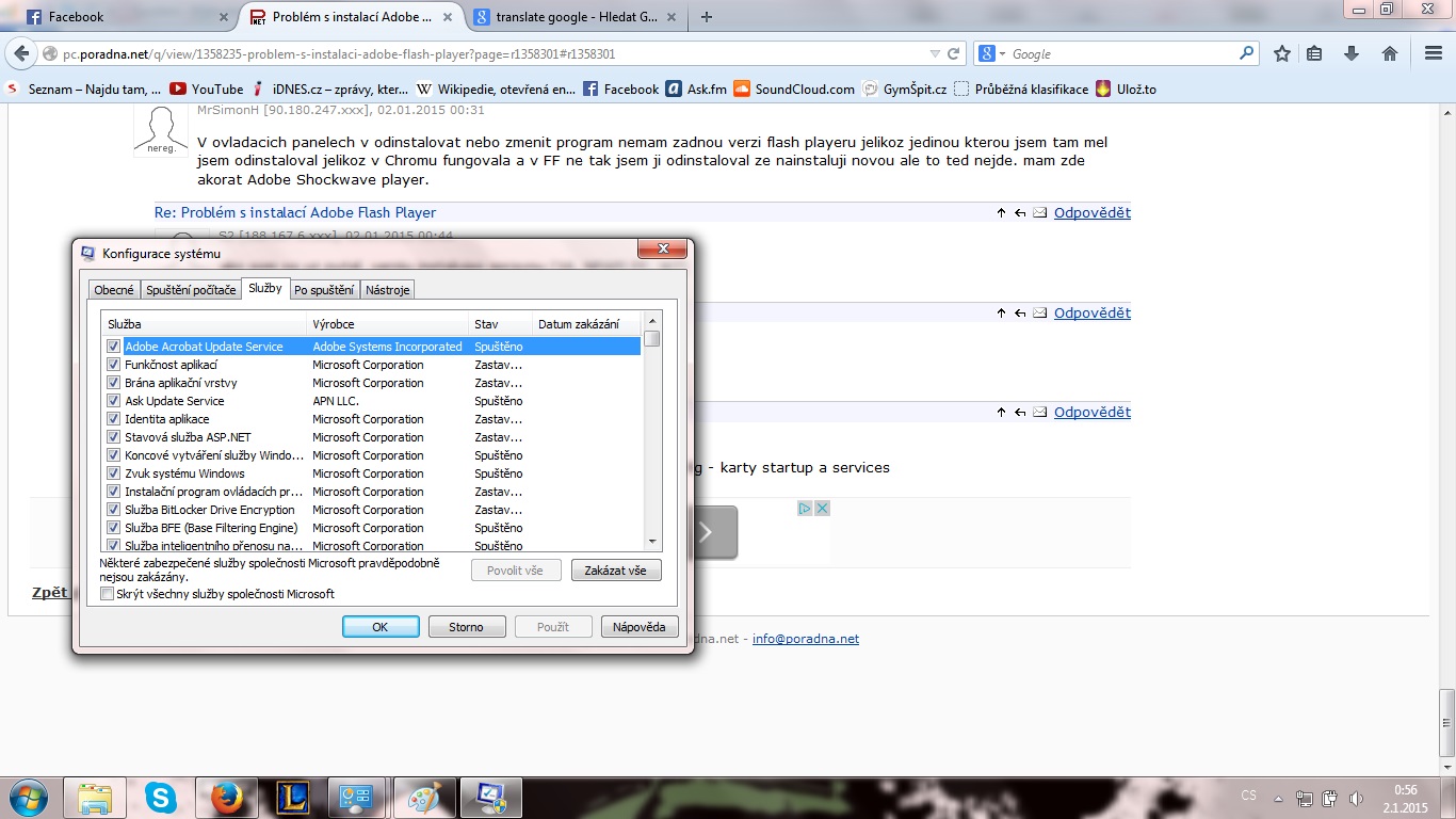 - msconfig - sluzby - vypnut ask update service, doplnit screan, kde bude zaskrtnuta moznost skryt vsetky sluzby MS... + aby bolo vidno vsetky sluzby
