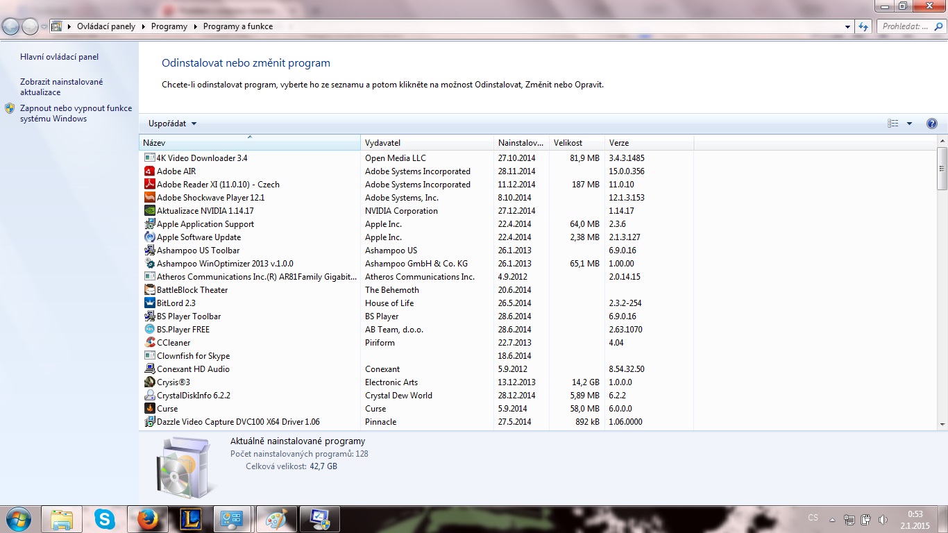 a instalovane programi dodam dnes, ale az pozdeji. jsem unavenej a uz se mi do toho ted nechce.