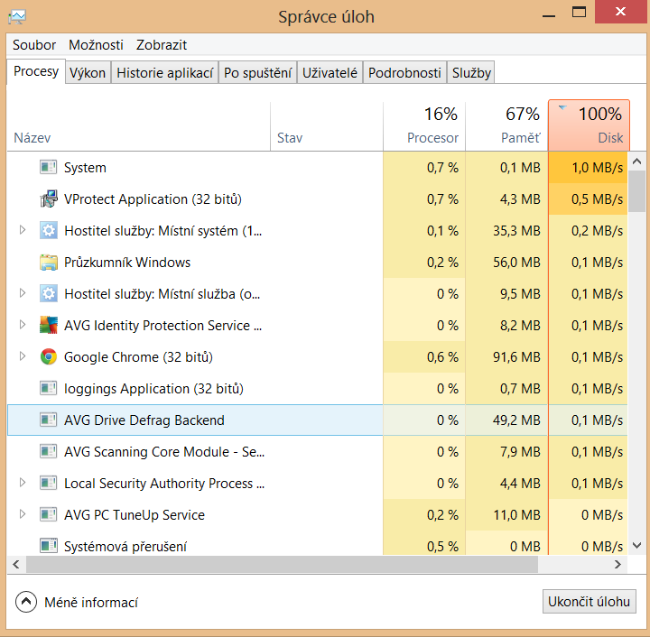 Dobrý den, potřeboval bych prosím poradit. Mám problém s diskem, který mi běží na 100% i když mám spuštěný třeba pouze internet, tudíž je vše velmi pomalé a zasekané. Prosím o radu.
