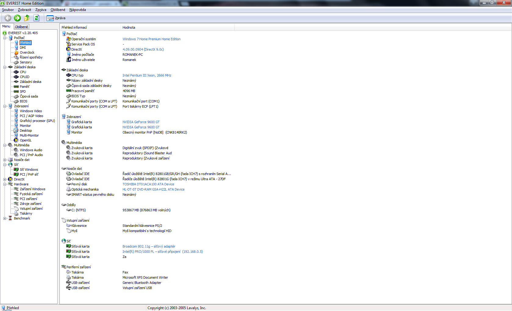Tady posilam co me vytahnul program EVEREST
