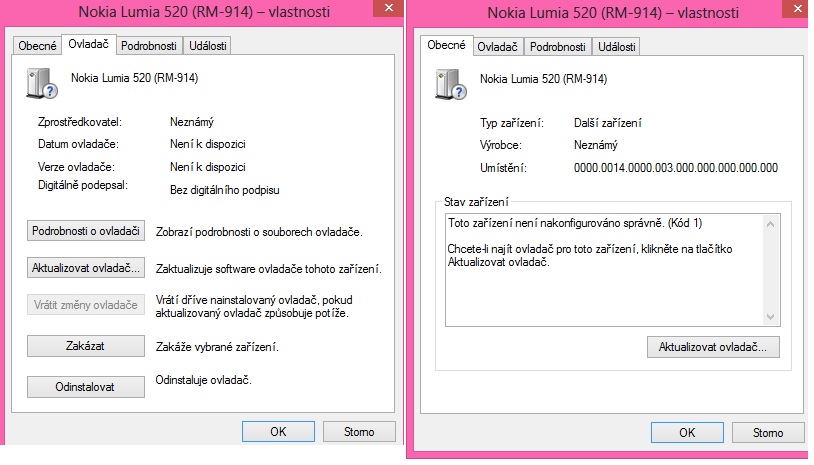 Zdravím Vás, mohl by mně někdo poradit ohledně tohoto problému? Mám zde problém, při kterém se mi telefon sice připojí k PC, ale ve správci zařízení je evidentně nějaká chyba. Prošel jsem snad všechna fóra s tímto problémem a nikde nic. Konkrétně se jedná o ovladač s názvem RM-914. Po pokusu ho nalovit automaticky PC 3 hodiny pracuje, ale stejně se nic nestane.