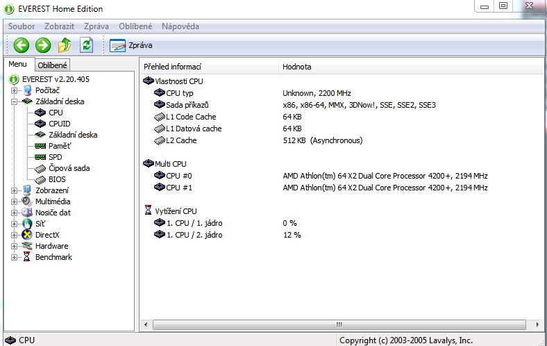 Můj Procesor: AMD Athlon (tm) 64 X2 Dual Core Processor 4200+