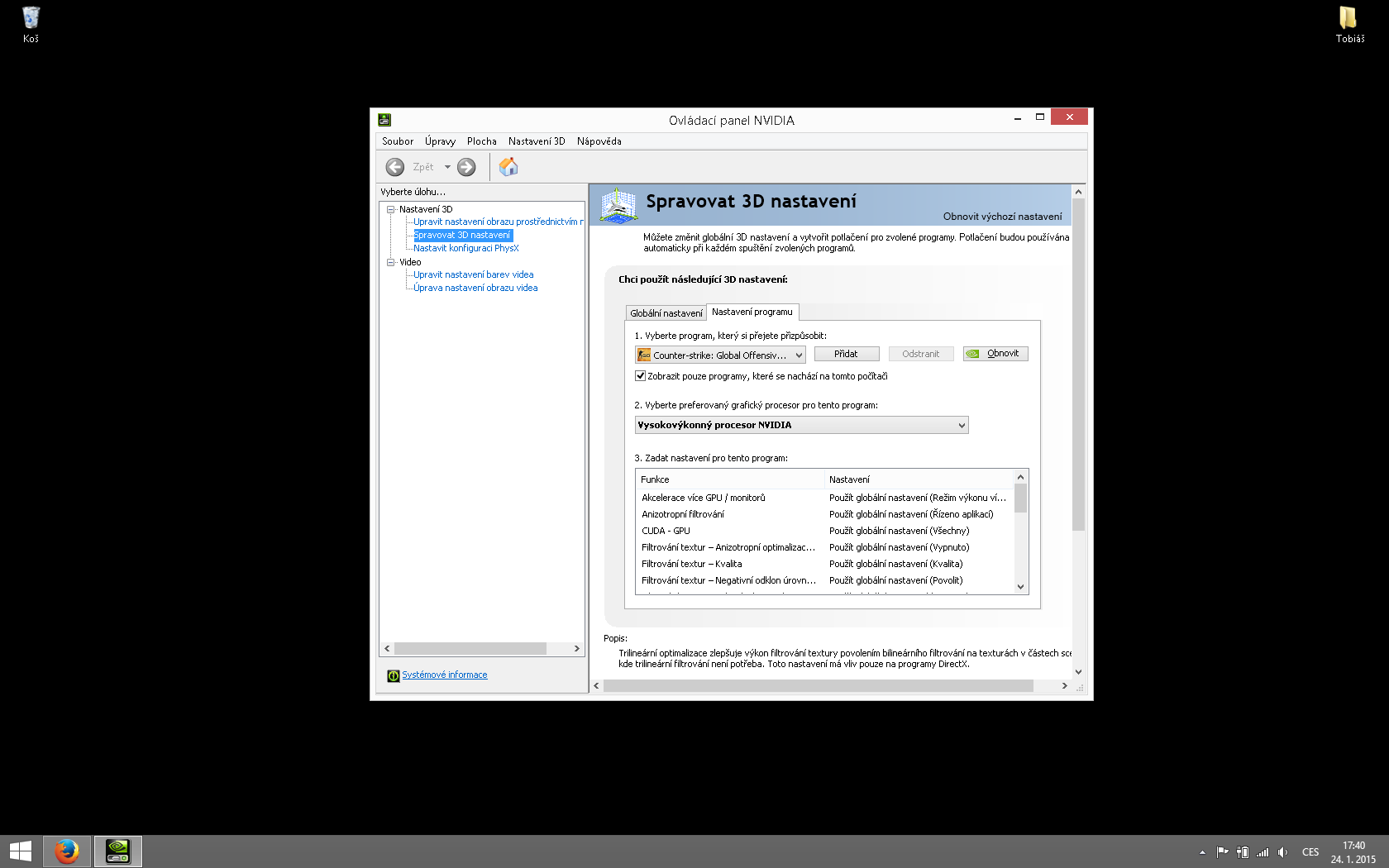 Dobrý podvečer, už tak 2 měsíce se mi hry spouští na Integr. kartě Intel HD 3000 , problém je v tom, že i když nastavím vyjímku v ovl. panelu NVIDIE tak se to přehodí zpět na Integrovanou, hry běží na GT540M jen když hru pustím s Grafickým procesorem GT540M, což funguje, ale např. u hry CS:GO nemůžu hrát kompetetivní zápasy, jelikož hra nebyla spuštěna přes Steam, ale ručně se změnou o které Steam neví etc. etc. . Neznáte někdo řešení jak pevně nastavit GT540M jako hlavní graf. kartu ? Přeinstalaci ovladačů jsem zkoušel, Windowsu také . Děkuji .