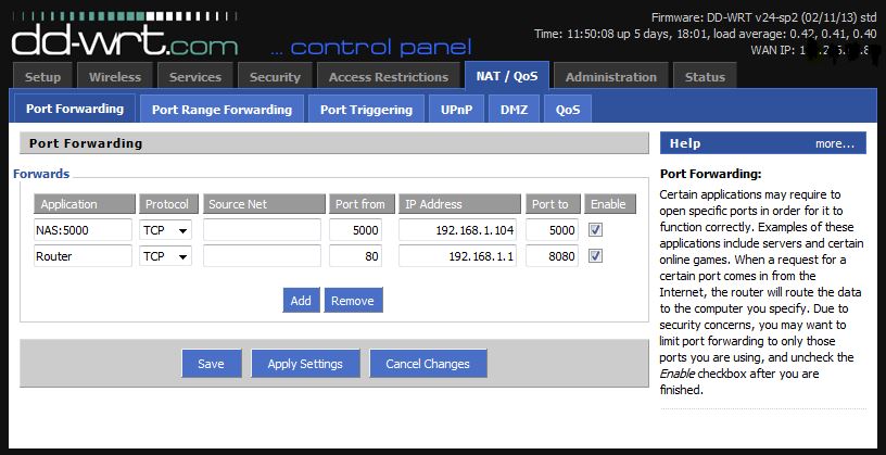 Mám veřejnou IP adresu, NAS Synology DS215j (DMS5.1), router TP-LINK TL-WDR3600 (Firmware: DD-WRT v24-sp2 (02/11/13) std). Na NAS se dostanu pomocí jmeno.synology.me mimo síť, v síti index.cgi.