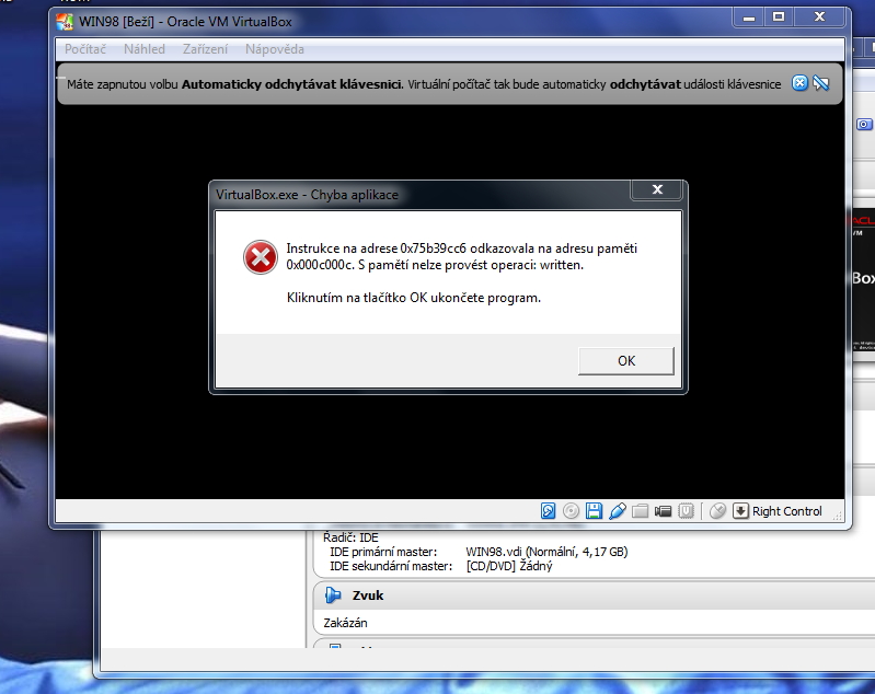 Zkus dat spis ten obrazek z konfiguraci virtualniho stroje.