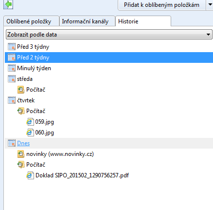 otevre se IE 8 ctrl+h zobrazi se historie,zobrazujou se tam veskere stranky atd.ta presne tam se me zobrazuji nektere typy souborunapr fotky txt dokumenty atd,ktere jsem si prohlizel na disku