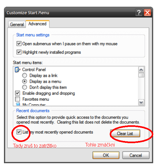 Ked to je odskrtnute tak ti to nebude v ponuke Start zobrazovat naposledy otvorene dokumenty. V Start to teda uz dokumenty ziadne nezobrazuje? V IE to stale zobrazuje co konkretne?