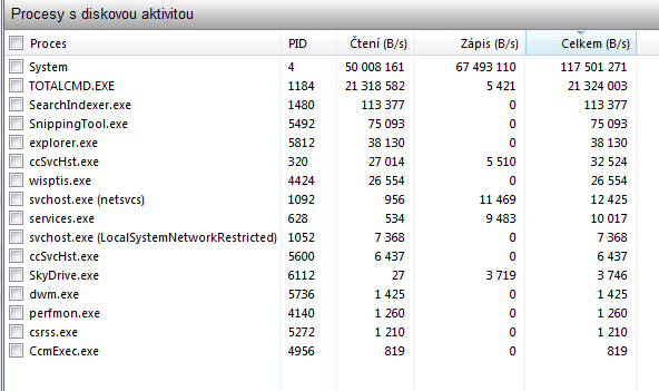 Spustit performance monitor a podívat se, jaký proces s disky pracuje