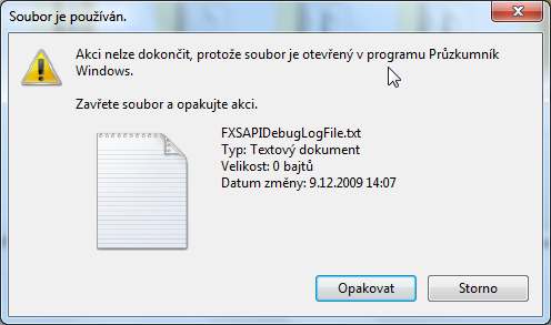 dobrá, vyzkoušíme si scénář, kdy je soubor zamčen jiným procesem. už to, dle tvého chabého vysvětlení, že se se souborem nedá hnout a sedí tam jako kráva, by naznačovalo, že by to mohlo být tím.