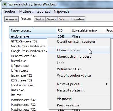 u tebe budeme předpokládat, že ho drží explorer. můžeš použít výše uvedený způsob. má to ovšem jednu nevýhodu. může nastat situace, kdy to rozjebaností systému nebude fungovat. ruční způsob bude fungovat vždy: