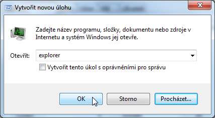 1)Najedu si do správce úloh a dám PROCESY/ najdu explorer a dám /ukončit proces. (Když dám ale ukončit proces tak nevididím dolní lištu ani nic co mám na ploše) tak jak mezi tím mám smazat ten soubor a zapnout znovu explorer z toho odkazu co jsi poslal