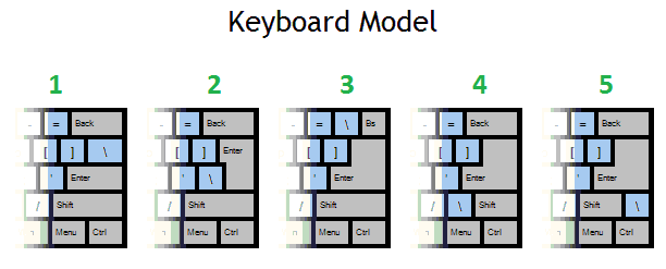 Důvod pro dlouhý enter je , že při standartní(startovní) rozmístění prsů (ASDF JKLŮ) je malíčkem dosažitelné bez problému, zatímco kdyby při úzkém entru (2) už je to nepohodlné. Varianty 3,4,5: část entru v horní řadě je nadbytečná.