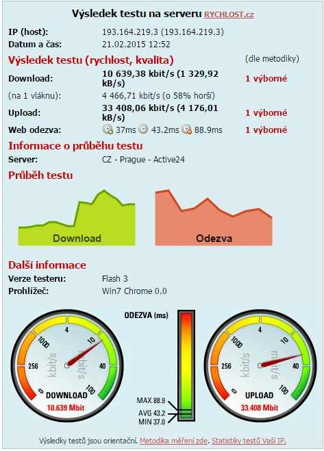 Jinak zde jsou naměřené hodnoty, zkusil jsem jak google chrome tak Mozillu, stále stejné hodnoty