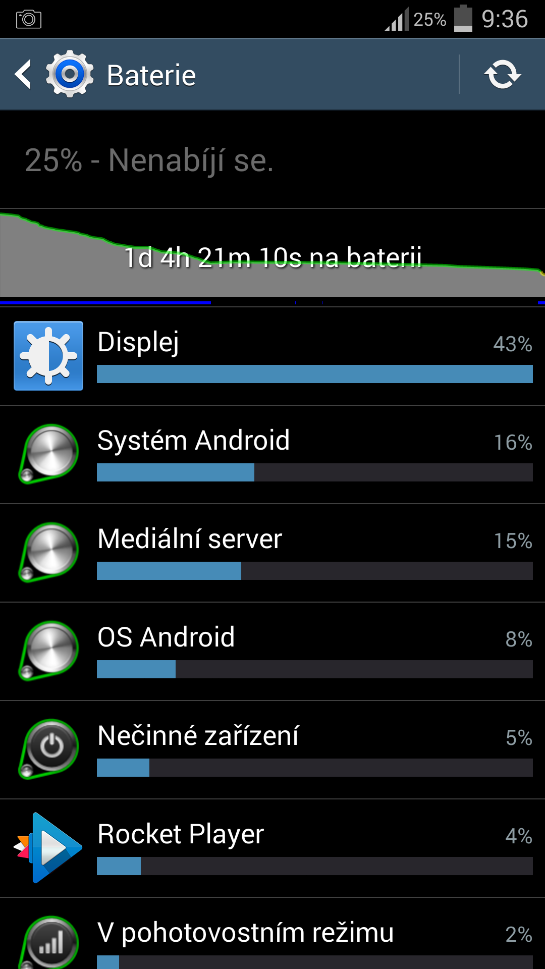 Vzdyt tam vidis, co ti zere energii, navic jasne nejvic mas displej, to je jaksi u telefonu normalni, ze displej si bere nejvic, bud ho budes muset vic nabijet nebo mit vic displej vypnutej. Samozrejme dalsi otazka je, jaky jas displeje mas nastaven, protoze snad logicky, cim vetsi jas, tim vetsi spotreba energie.