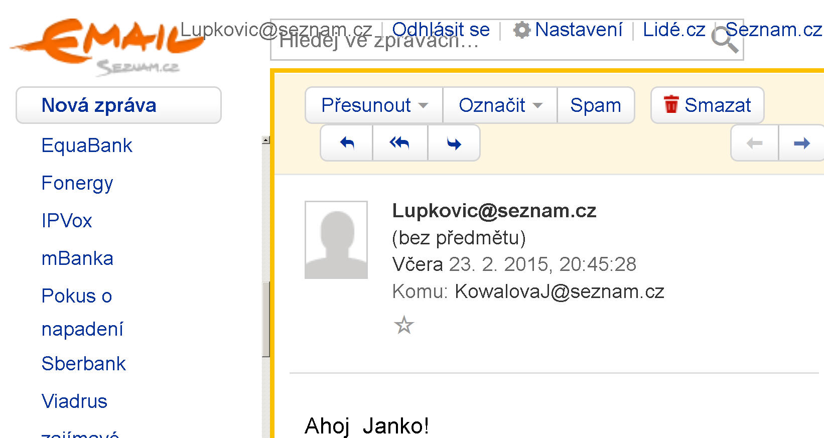 děkuji moc, je to ono, ale zase vyvstal jiný problém jak jsem příhlášen na svou adresu tak mi vypisu…