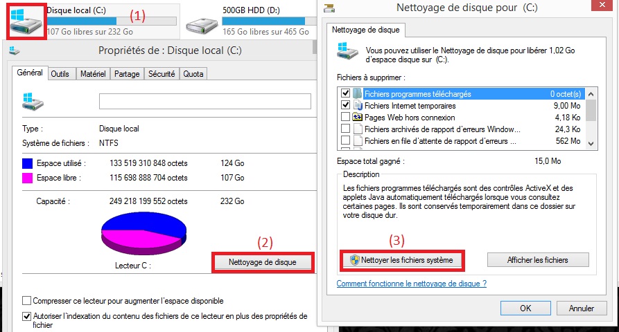Prvý normálny príspevok, vo francúzštine. Na mazanie starého windowsu je nástroj zvaný čistenie disk…