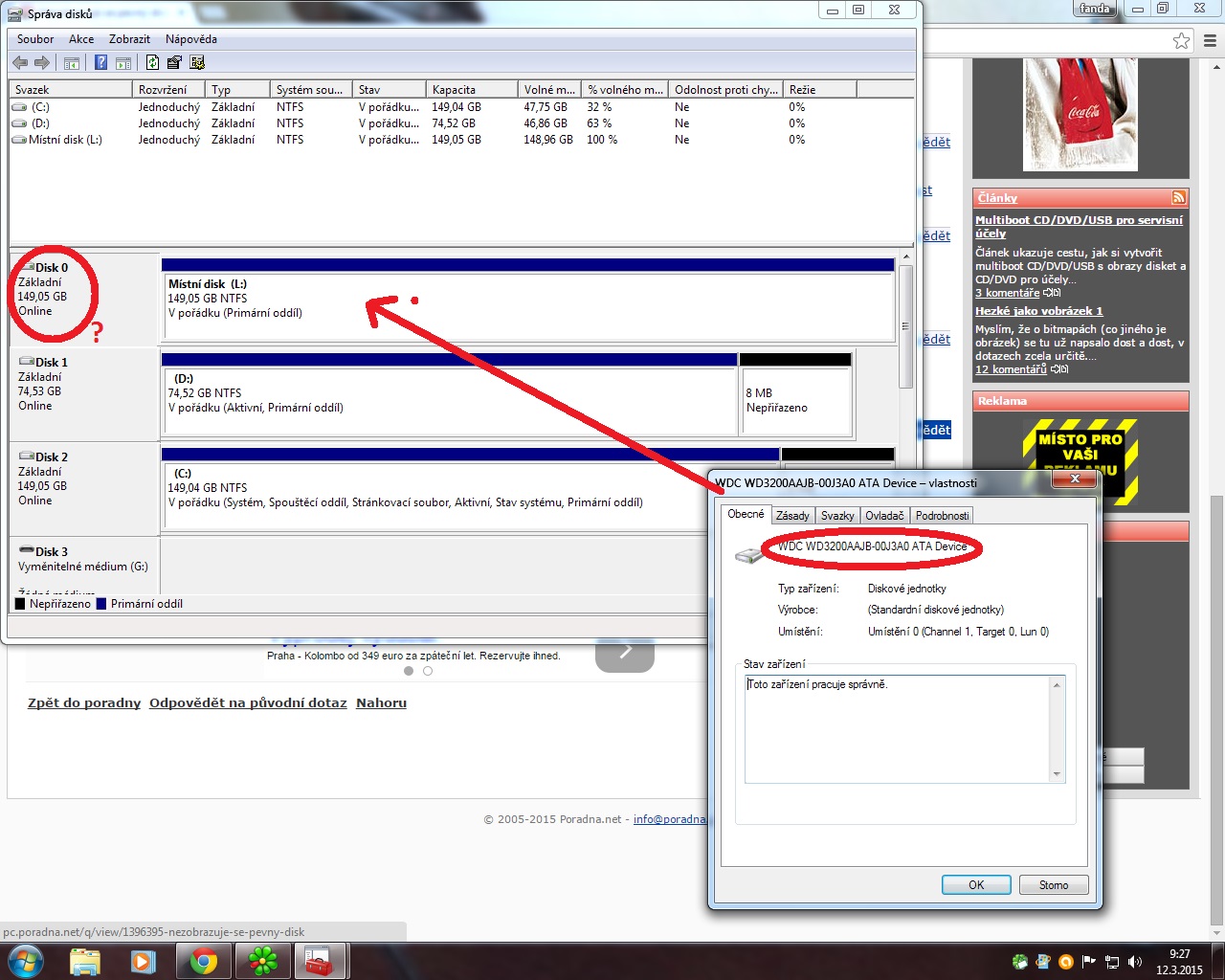 WDC WD3200AAJB-00j3a0 jinak už to tam ve správci nějak skočilo disk už funguje ale proč jen na 160 GB a ne 320 GB?