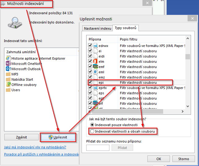 Ano, testoval. Windows Search není schopný uchopit *.epim jakožto textový soubor a najít v něm požad…