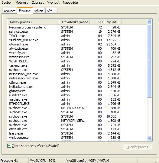 Píše tam, že CPU je vyťažené na 39%.