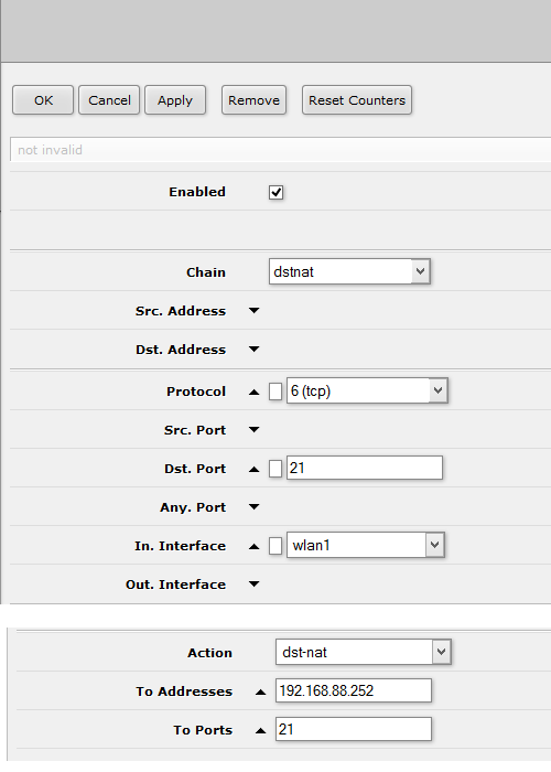 - akorát jsem zaměnil IP za tu, s kterou se přihlašuji na D-link, to je 192.168.88.252, a port místo 7000 dal 21, viz screen.