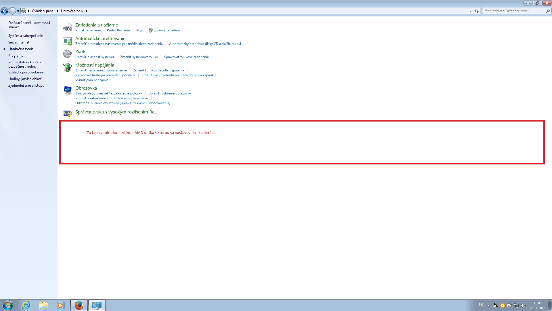 A ešte jedna vec, v ovladaci panel/Hardware/ by som mal mať zložku AMD, kde sa nastavuje hardwarová akcelerácia ale nieje tam a už som prehľadal celé cdečko a nikde som tú aplikáciu nenašiel.
