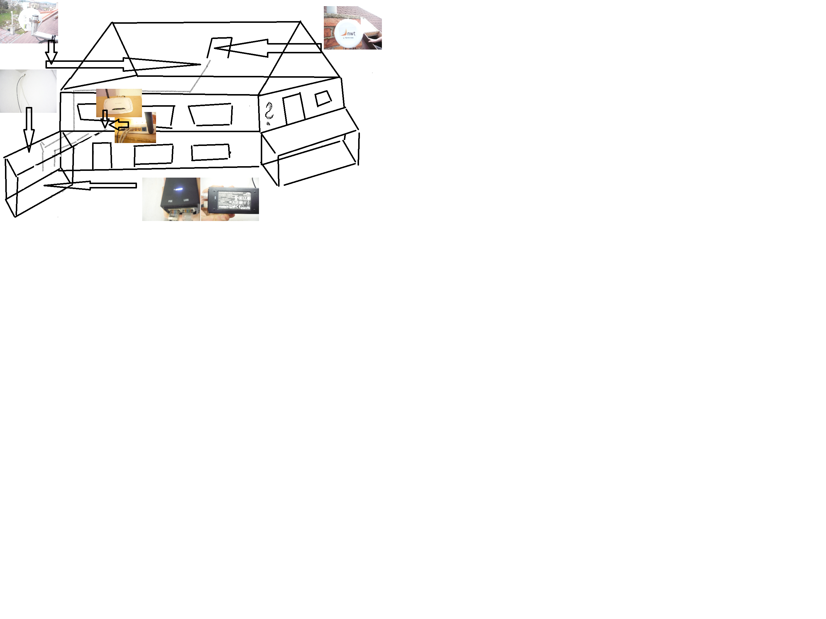 LAN bude na tom adapteri vystup. Je to cele zmatene (inak super obrazok!). Cierny adapter (hovoris mu switching power) sluzi iba ako napajanie toho Mikrotiku(?) na streche. Upustil by som od tuzby delit privodny kabel a proste prepojil obidve WIFI zariadenia klasickym UTP kablom (postup popisal brtnik), snad to bude fungovat. Podla fotky je vstup WIFI routra zapojeny v LAN, takze by sa dalo ocakavat, ze je kompletne nastaveny (mozno aj zaheslovany) tvojim internetovym poskytovatelom, dalsie pripadne otazky by som teda smeroval tam. ... pravdepodobne ti radi predaju dalsie WIFI zariadenie (TP-link je dobry), pravdepodobne ti ho pri predaji aj zdarma nastavia, pravdepodobne radi pridu aj osobne a za urcitu sumu problem kompletne vyriesia.