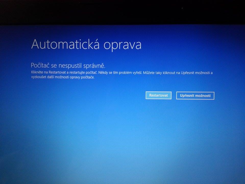 Ahoj přátele dnes ráno jsem si zapnul notebook a náhle mi tam skočilo AUTOMATICKÁ OPRAVA - počítač se nespustil správně a pak tam jsou určité možnosti. Obnovení nejde, protože to píše, že tam není žádný bod obnovy. Oprava taky nejde, furt stejný výsledek. Notebook mám z druhé ruky, tak k tomu nemám ani žádné CD / DVD na obnovu. Poraďte prosím. Myslíte že kdybych někde sehnal CD / DVD na obnovu, že by to šlo. A co o data, fotky atd... který tam byli, na ty už asi můžu zapomenout co? Za jakoukoliv radu pro chod notebooku budu velice vděčný.