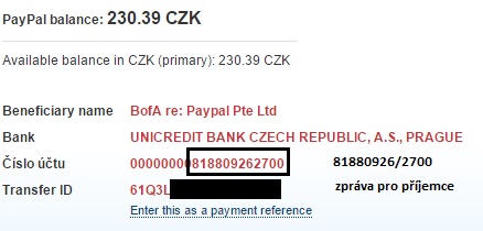 PayPal je obdoba bankovního účtu.