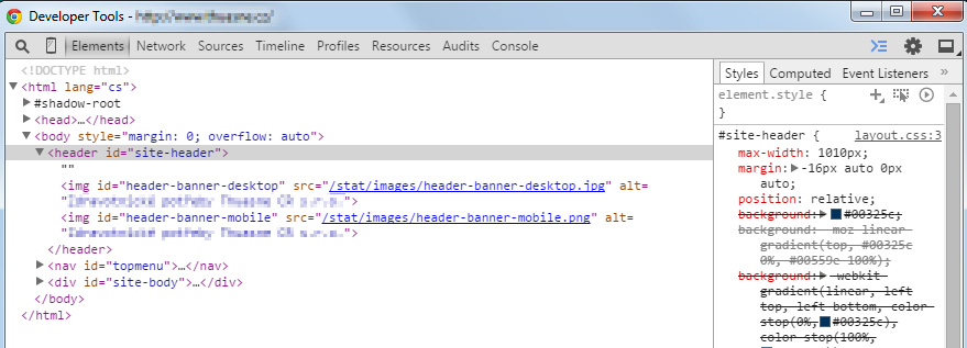 Problém: fyzicky se v prohlížeči v kódu nad headerem objeví textové uvozovky a já netuším, odkud se berou :)