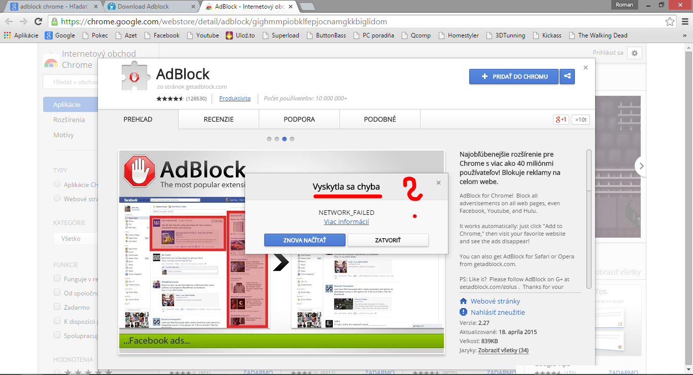 ADBLOCK chrome nefunguje...