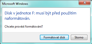 Mám problém, při zapojení HDD do počítače mi vyskočí hláška "před použitím naformátovat". Nevím co se s tím stalo. Najednou z ničeho nic mi disk přestal pracovat. I přes několikanásobné odpojení a připojení je to stále to samé. Pomozte prosím někdo. Na disku jsou dokumenty o které nemohu přijít.