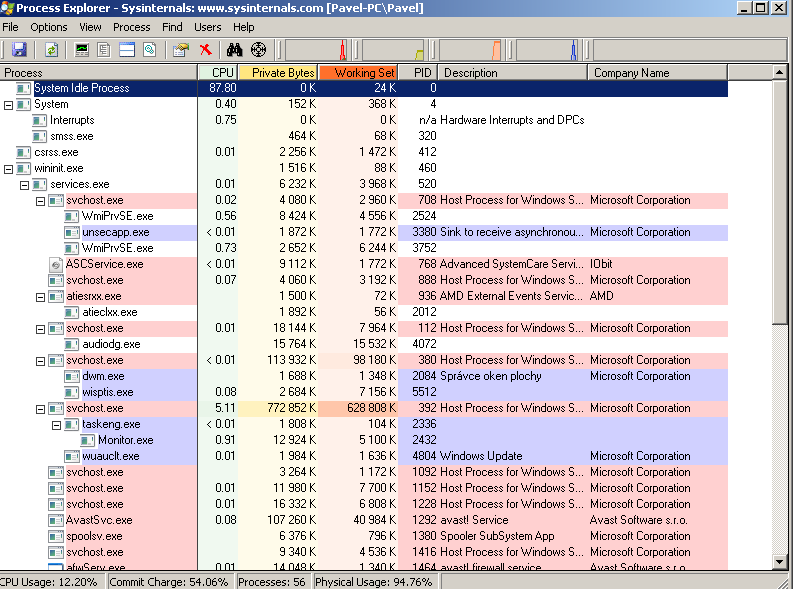 Ve správci úloh zjistíš PID, které náleží tomu rozežranému svchostu.
