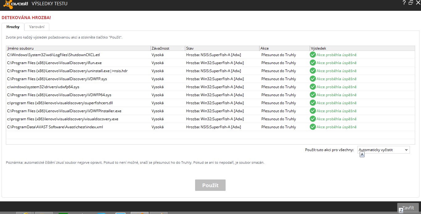 A hlásí mě to 14 virů například: C:\Program Files (x86)\Lenovo\VisualDiscovery