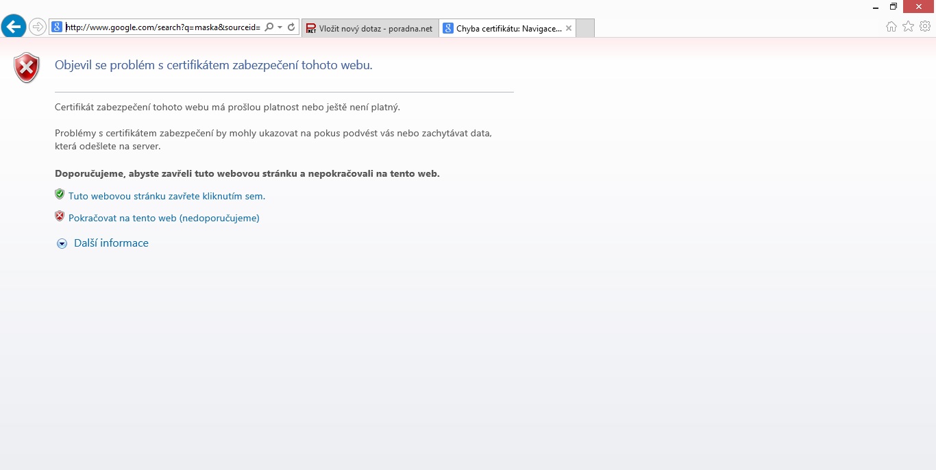 Moc Vás prosím o pomoc pokud zapnu Explorer nebo chrome tak mě prohlížeč hlásí:
