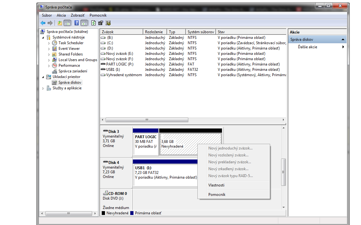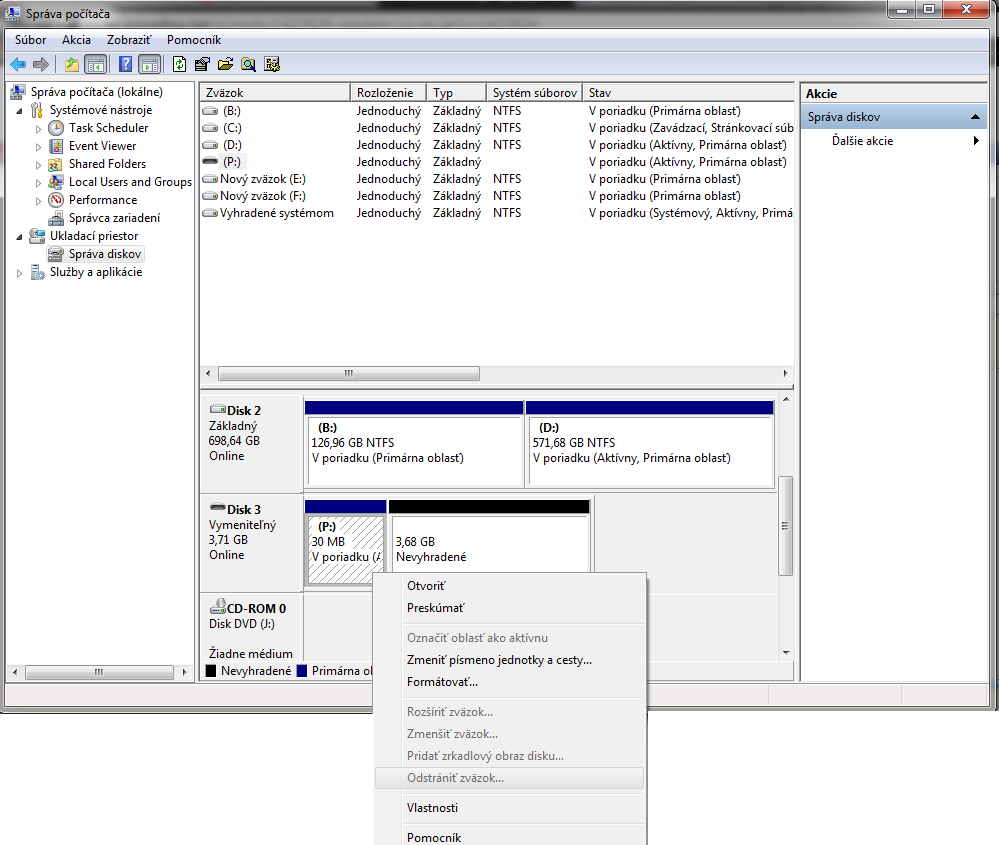 Ak ti nejde ani jedna particia vymazat tak skus kliknut na celu tu zlosku = tam kde mas napisane "DISK 3" tak tam klikni PRAVYM tlacitkom mysi a najdi tam nieco ako vymazat alebo rozsirit oddiel alebo nieco take....